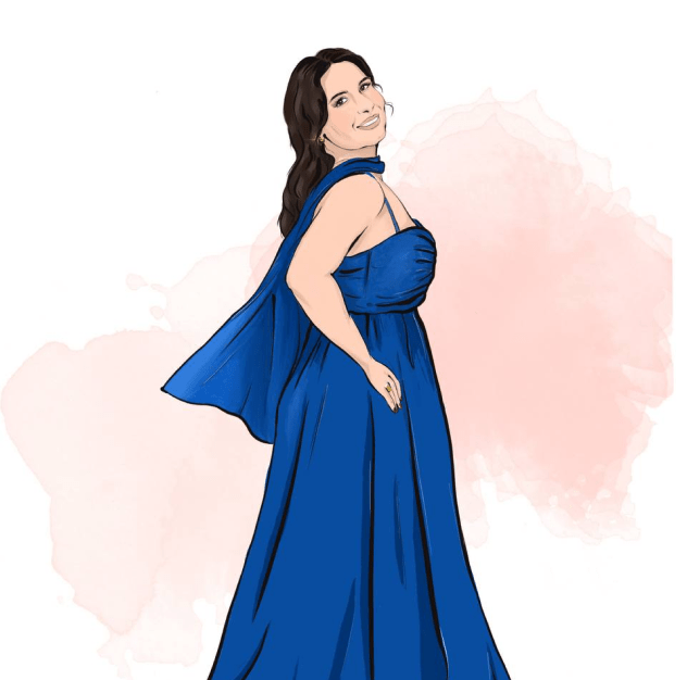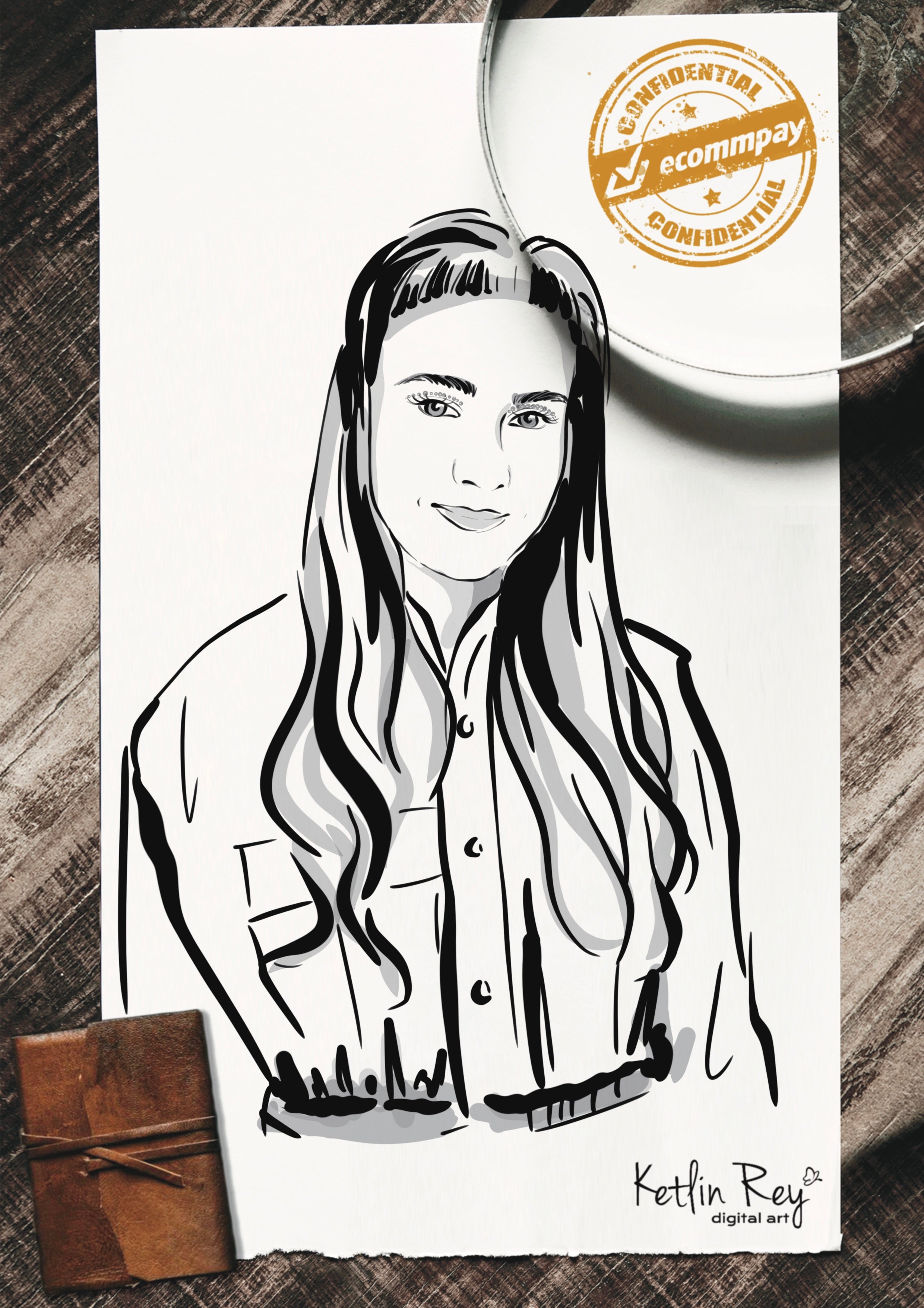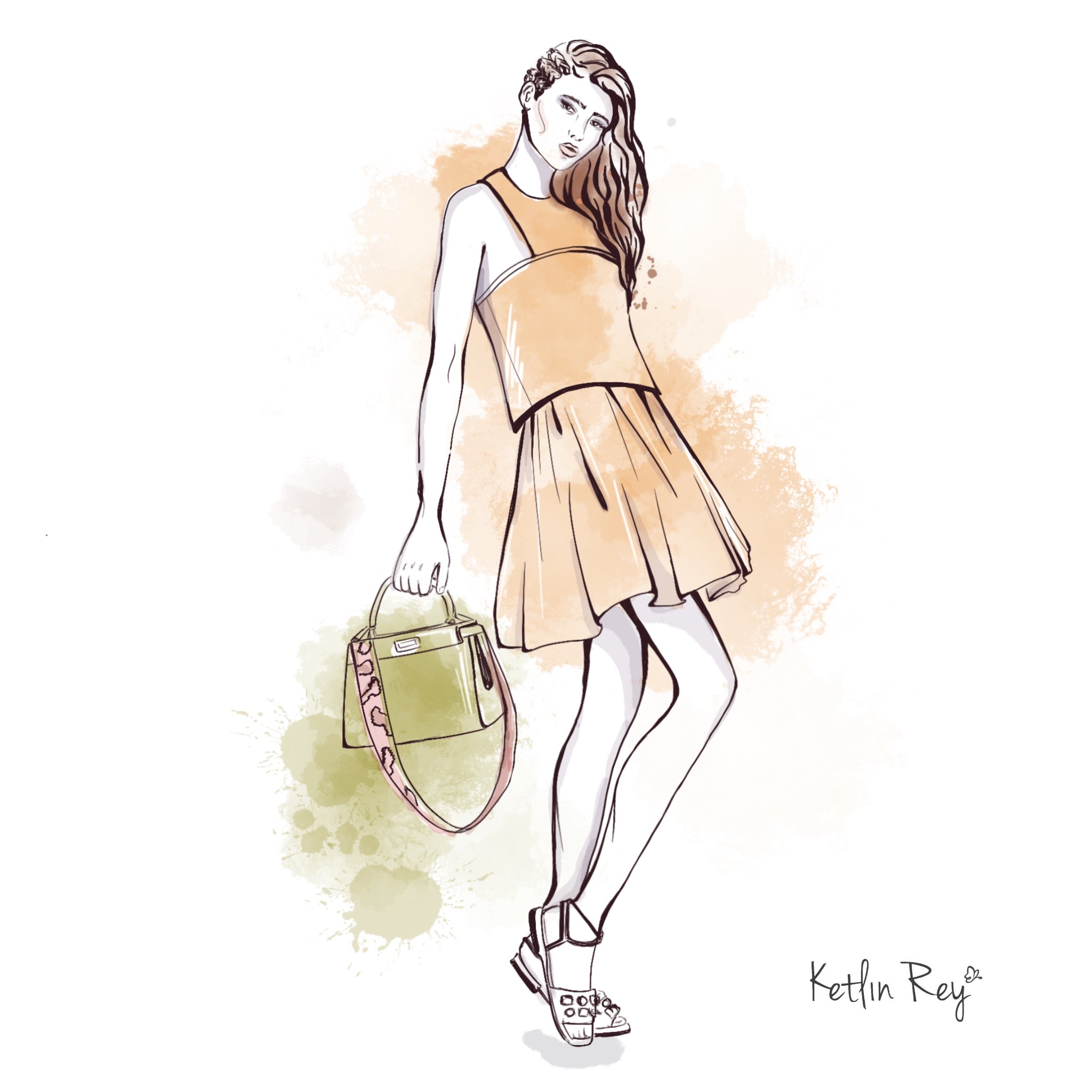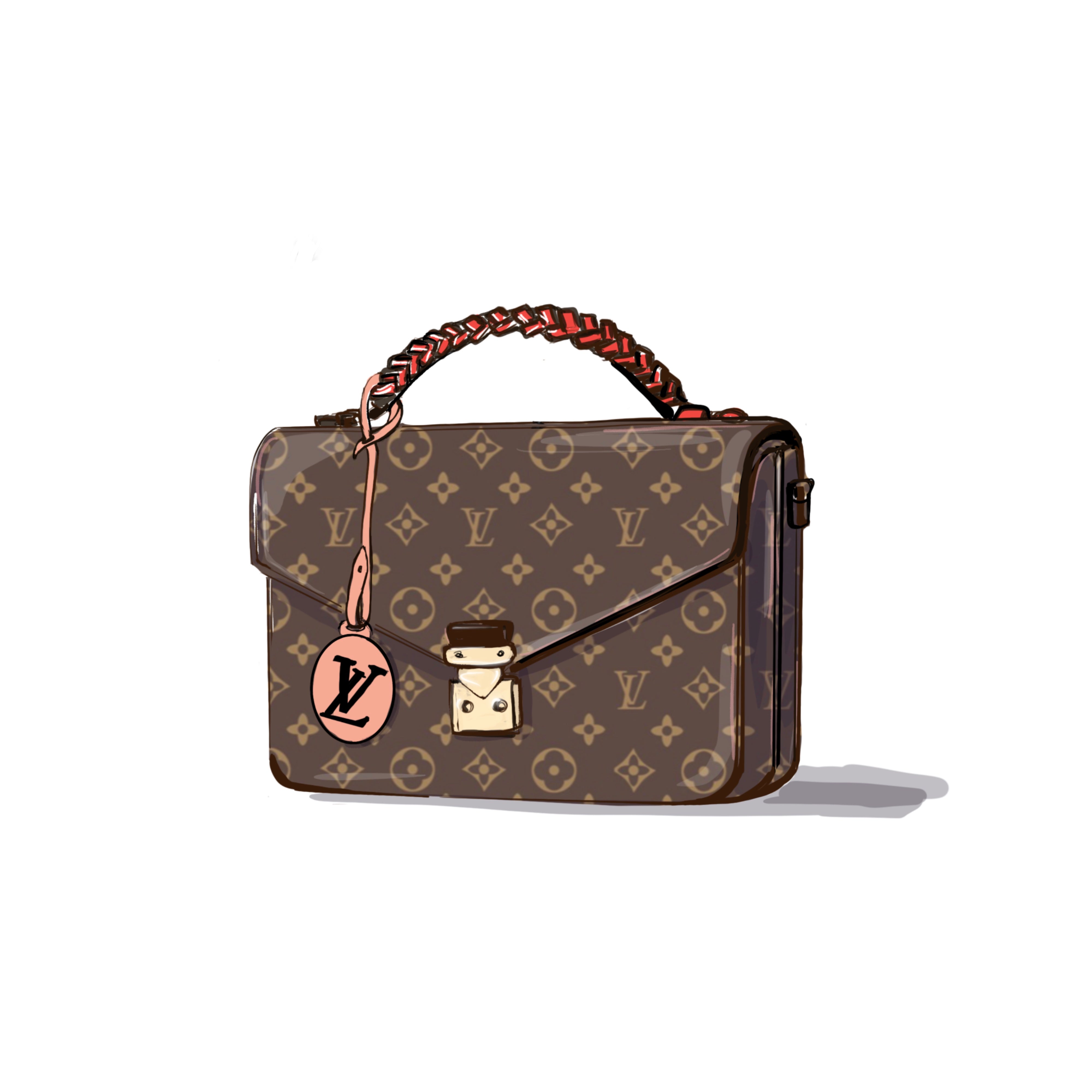 Захватывающая цифровая иллюстрация девушки в сидячей позе, в коричневых брюках и с белой сумкой-мессенджером в качестве аксессуара. Эта работа, тщательно созданная на iPad с использованием Apple Pencil с Procreate, отражает суть современного стиля и цифрового искусства.